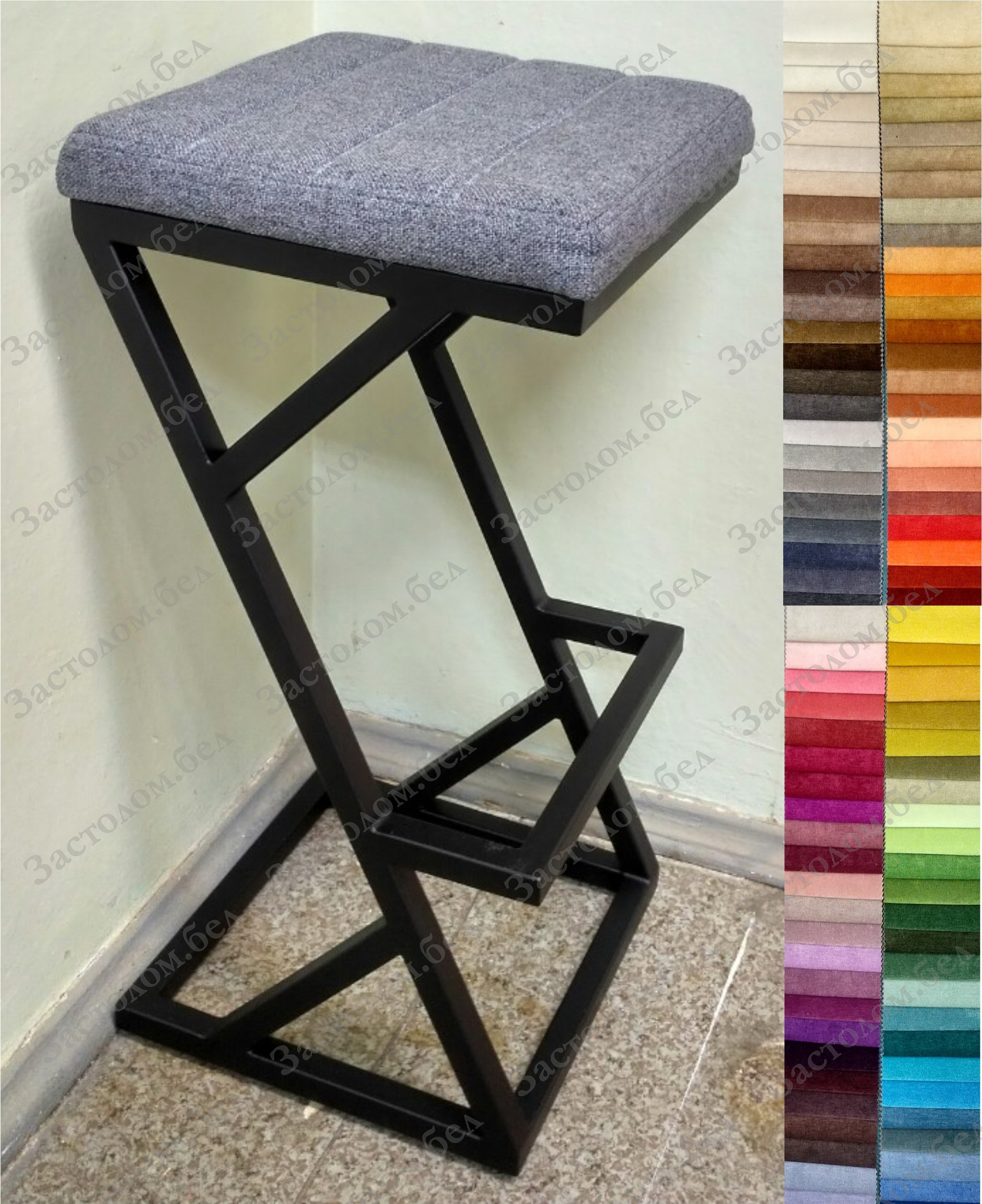 Изготовим под заказ полубарные стулья и барные стулья "Богомол М" с наклоном спинки и мягкой подушкой в стиле лофт. Цвет обивки и высота на выбор. Доставка по всей РБ