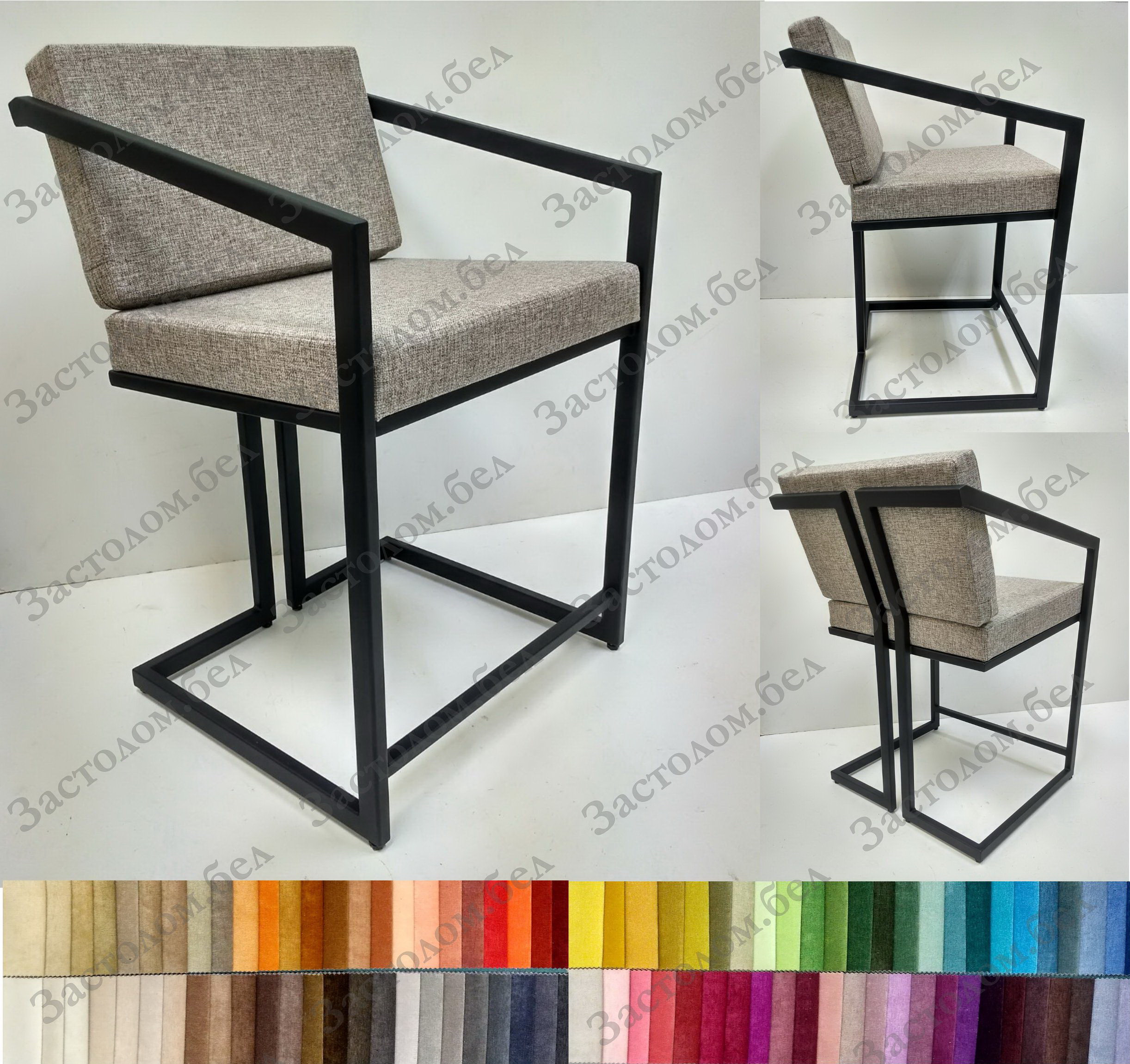 Изготовим под заказ полубарные стулья и барные стулья "Эфес МН" с наклоном спинки и мягкой подушкой в стиле лофт. Цвет обивки и высота на выбор. Доставка по всей РБ