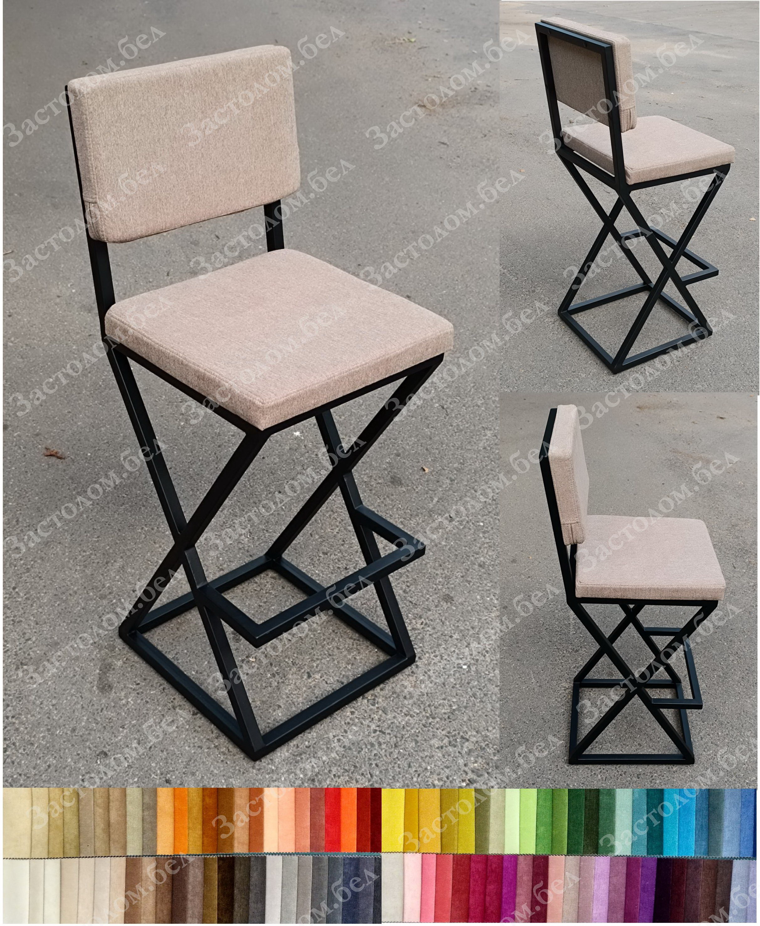 Изготовим под заказ полубарные стулья и барные стулья "Х-2М" с наклоном спинки и мягкой подушкой в стиле лофт. Цвет обивки и высота на выбор. Доставка по всей РБ