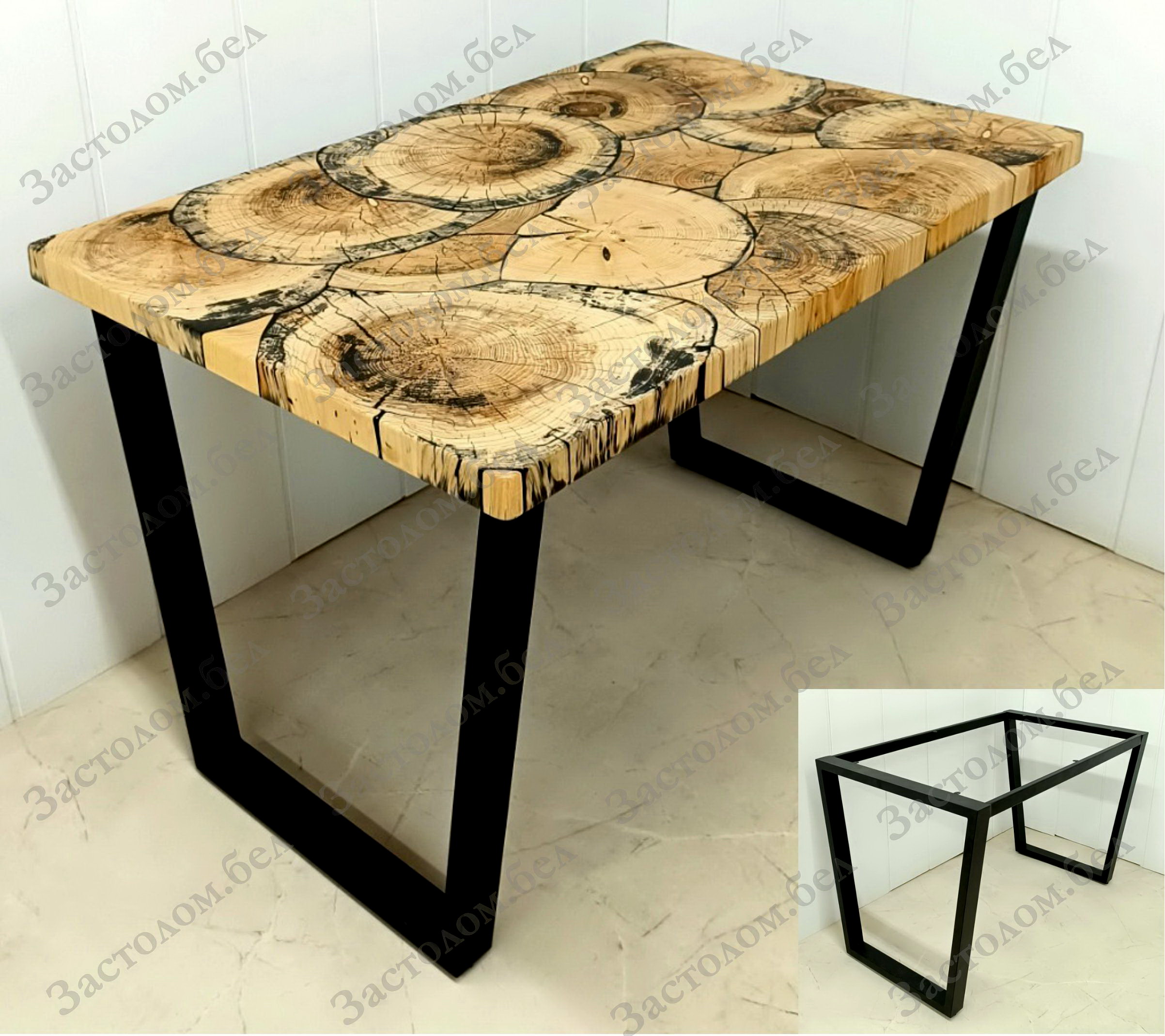 В наличии УНИКАЛЬНЫЙ стол со столешницей из СПИЛОВ дерева на цельносварном подстолье серии V