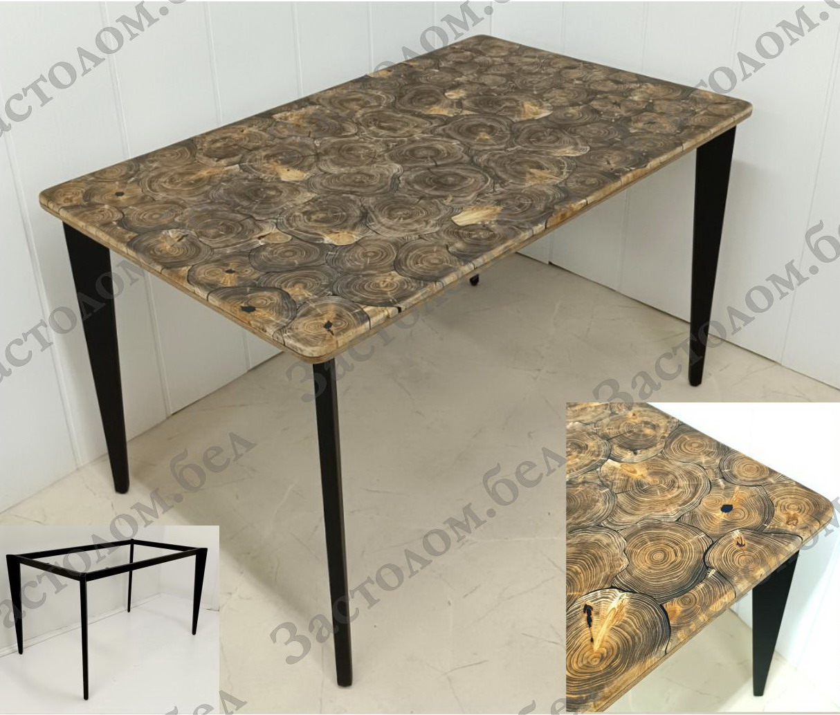 НОВИНКА для Беларуси: стол из СПИЛОВ 30-летней ТУИ на цельносварном подстолье серии "Т-5". ДОЛГОВЕЧНОСТЬ и ЭСТЕТИКА!