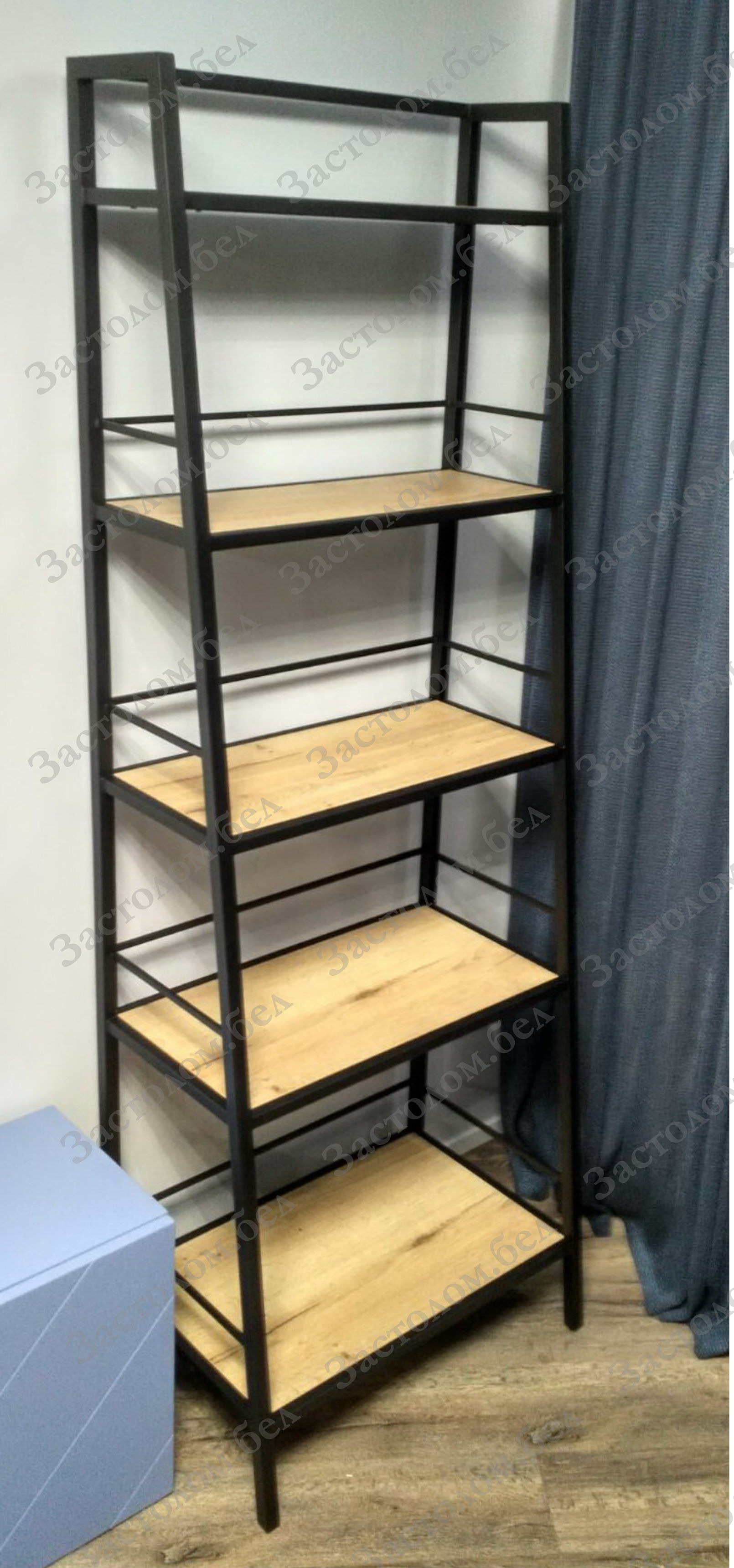 Стеллаж на металлокаркасе с полками из ЛДСП или массива дуба. Выбор размера и цвета