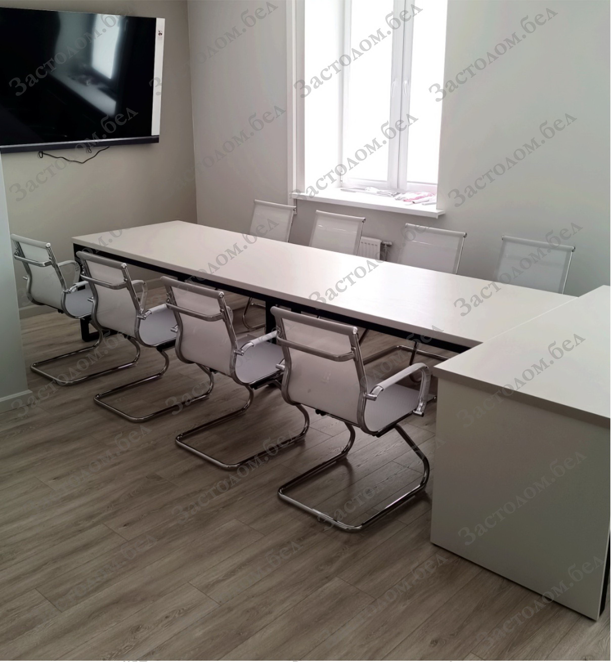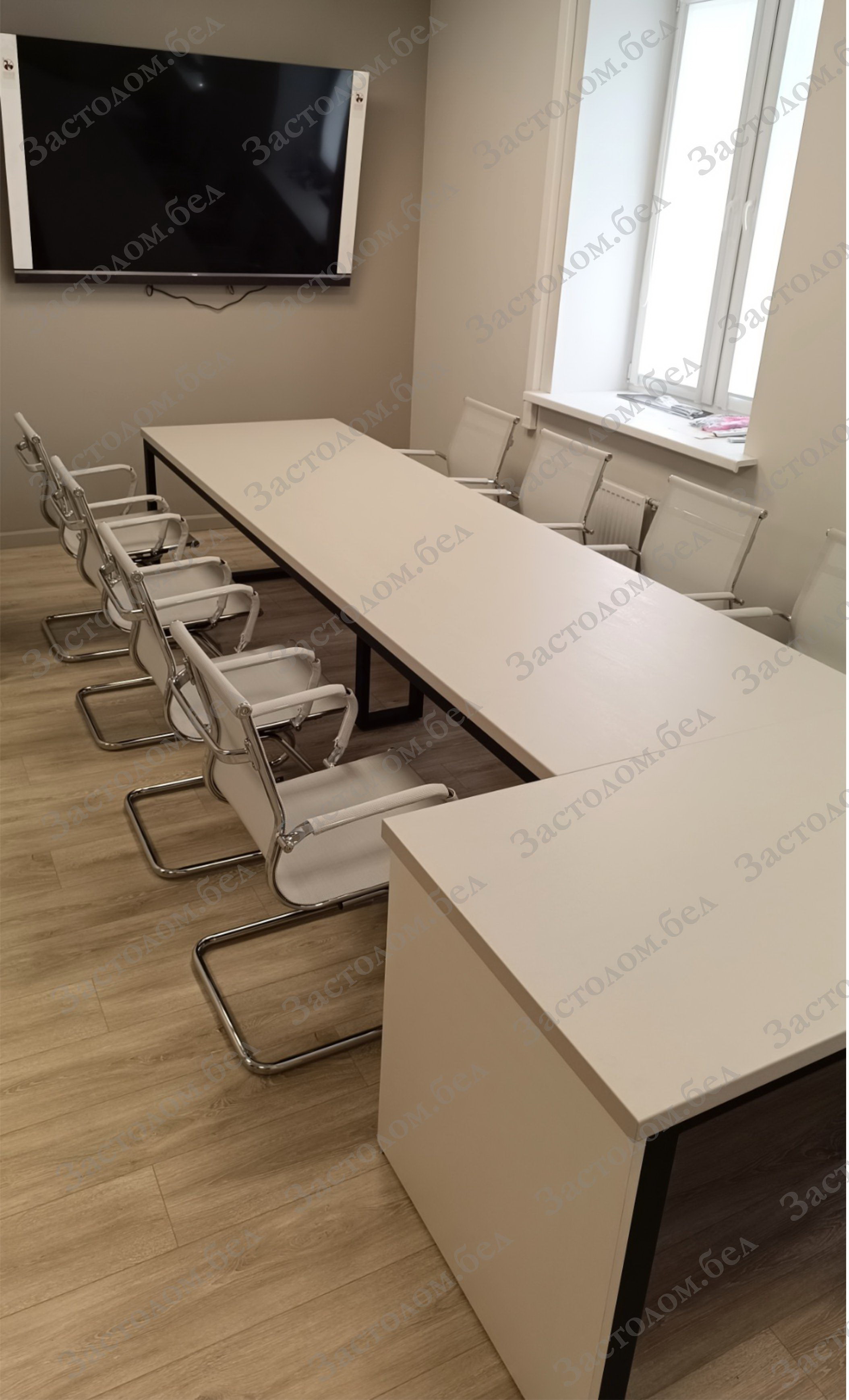 - максимальная длина столешницы из ЛДСП для конференц-стола может быть до 2750мм без стыка и 5500мм с 1-м стыком.