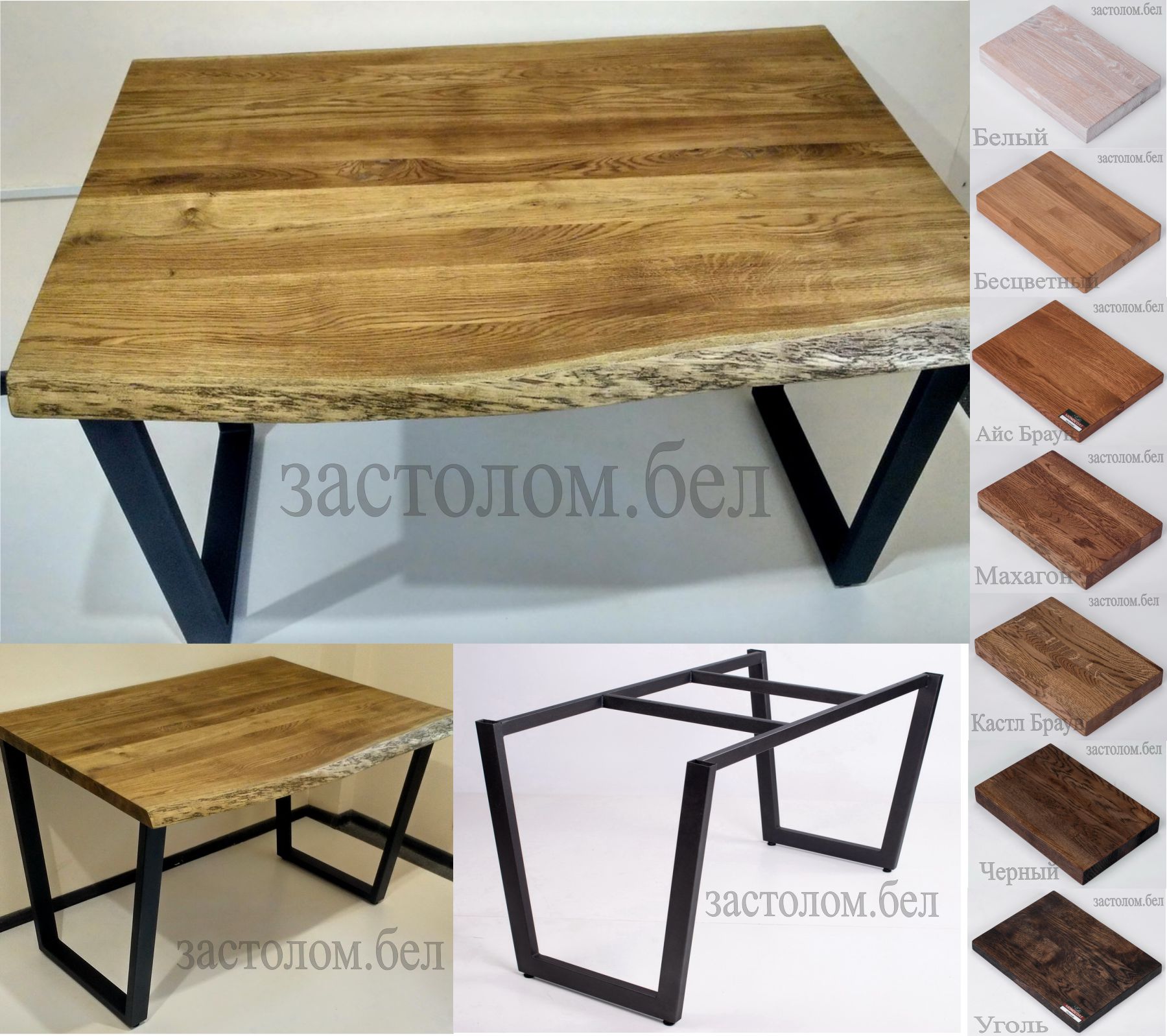 Изготовим стол из массива дуба на цельносварной раме серии V. Столешница из цельно и широколамельного щита из массива дуба с живым краем. Выбор цвета и размера столешницы