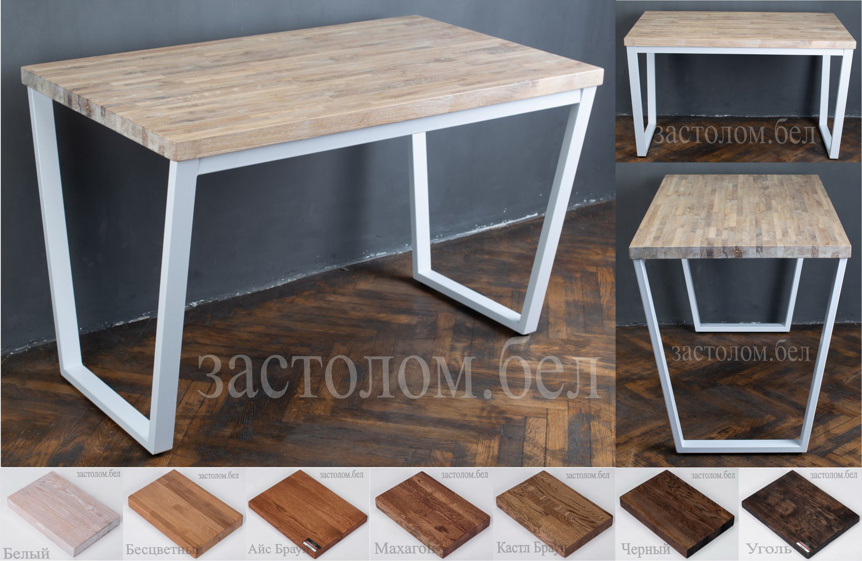 Заказать надежный стол из износостойкого постформинга, ЛДСП или массива дуба на V-образном цельносварном подстолье с выбором профиля трубы ножек и цвета столешницы