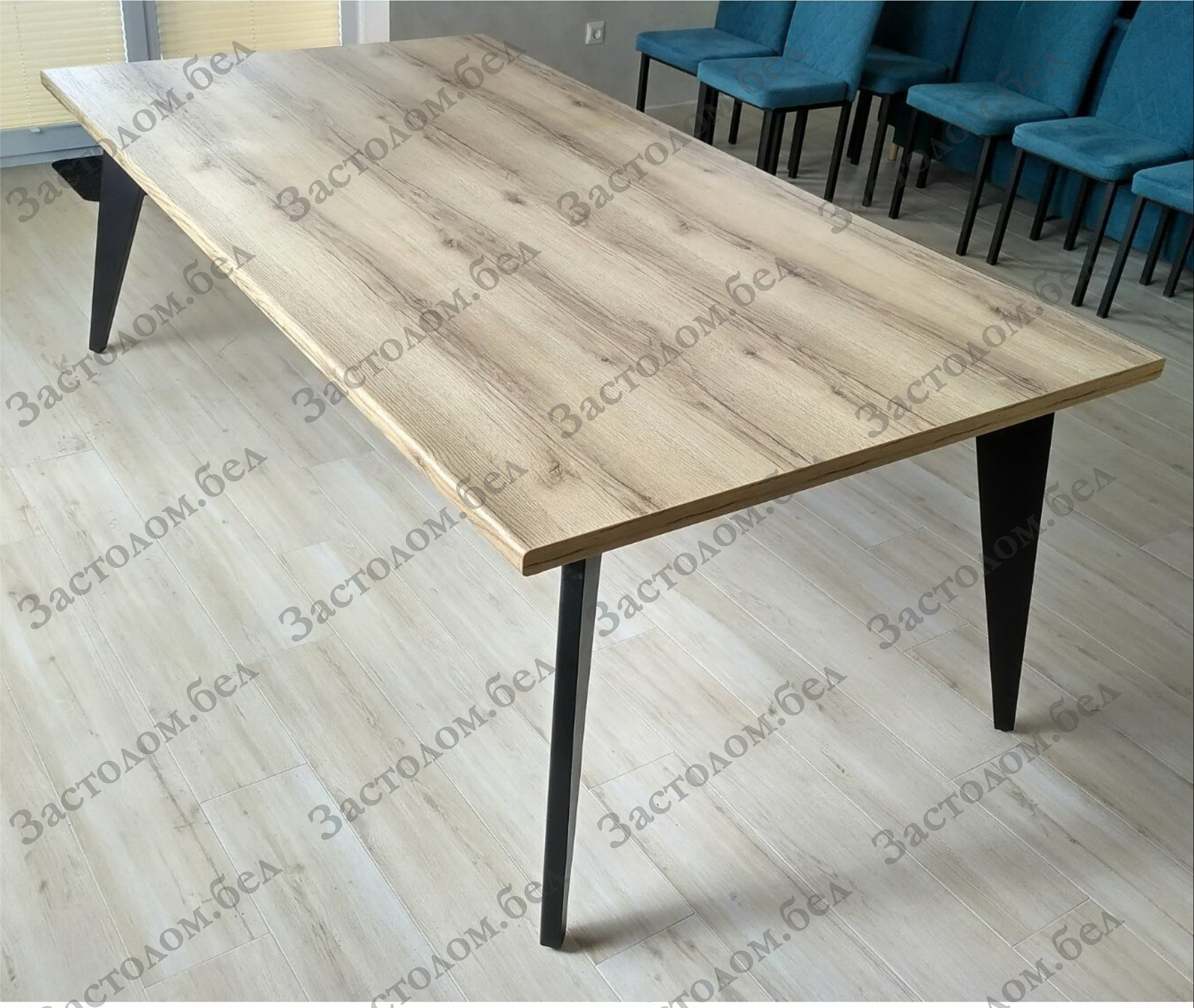 Индивидуально разработаем, изготовим, доставим и соберем ПОД КЛЮЧ офисные столы для переговоров серии "К-5" ЛЮБОГО РАЗМЕРА и ФОРМЫ на металлоконструкциях со столешницами из массива дуба, постформинга или ЛДСП с выбором цвета. Доставка по всей РБ