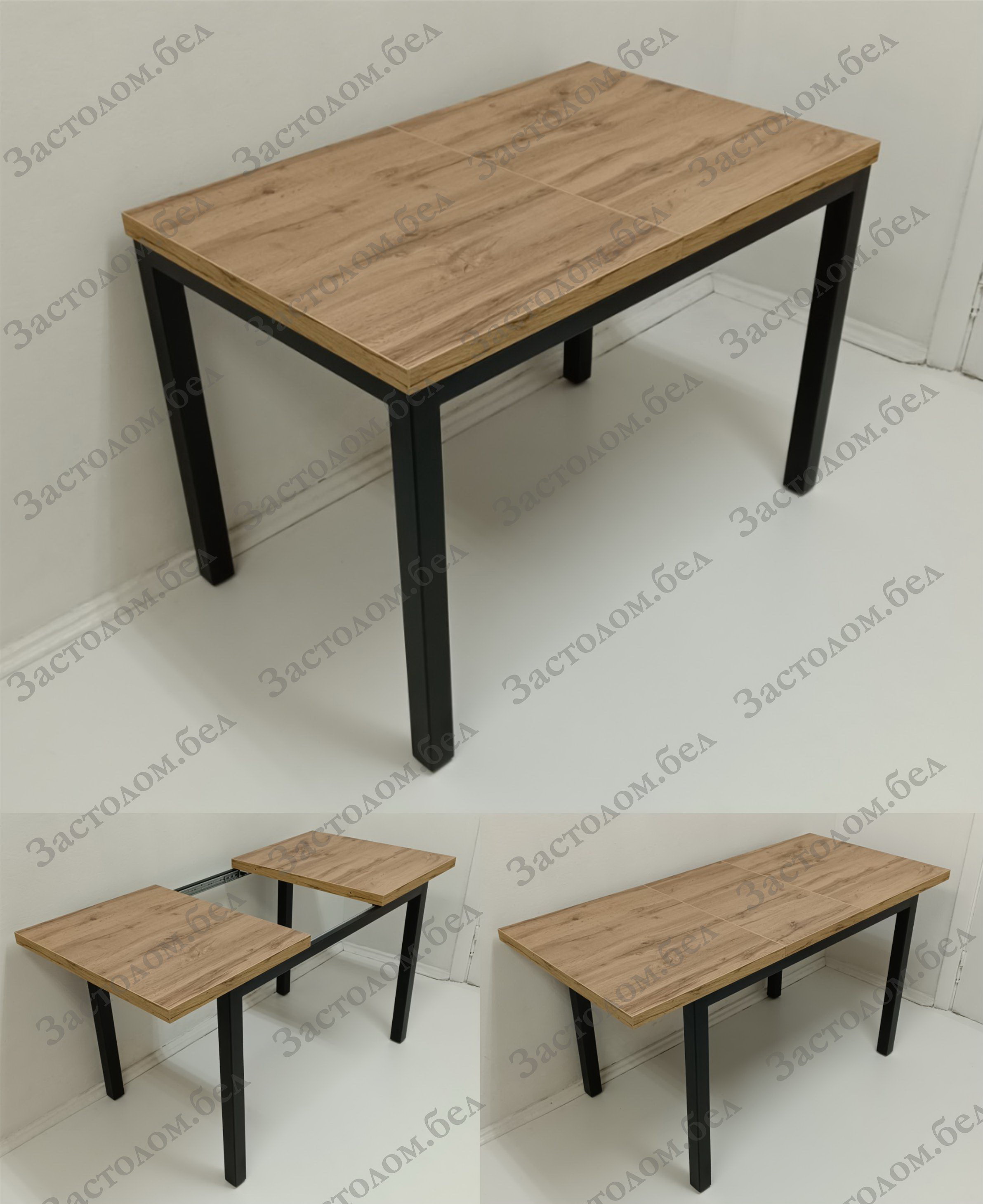 Изготовим кухонные или обеденные РАЗДВИЖНЫЕ столы из постформинга, ЛДСП или массива дуба на УДОБНОМ цельносварном металлическом подстолье серии "Т" с широким выбором цвета столешницы и размера стола под заказ