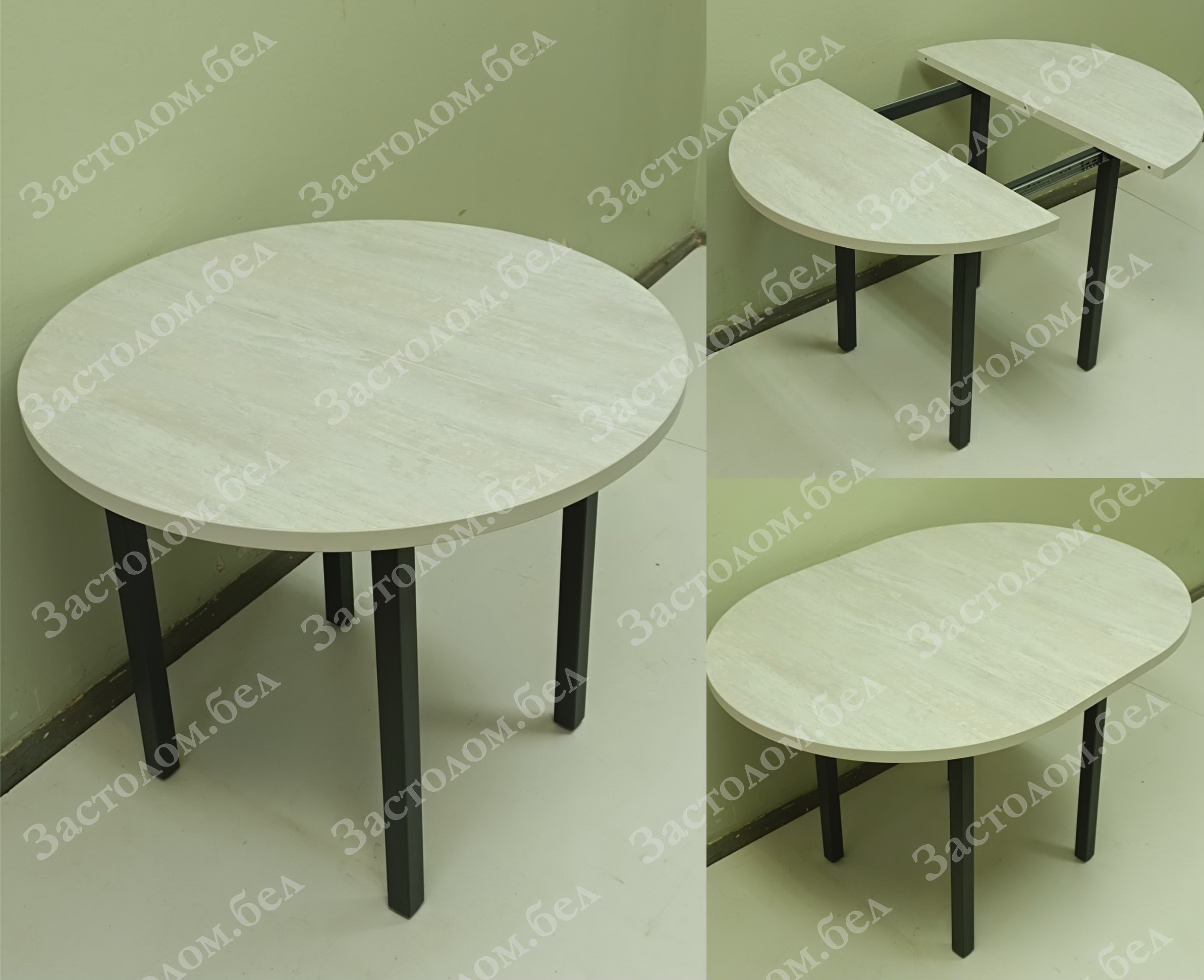ИЗГОТОВИМ по Вашим размерам кухонные обеденные круглые РАЗДВИЖНЫЕ столы из постформинга, ЛДСП или массива дуба на НАДЕЖНОМ цельносварном металлическом подстолье серии "Т" с широким выбором цвета столешницы под заказ