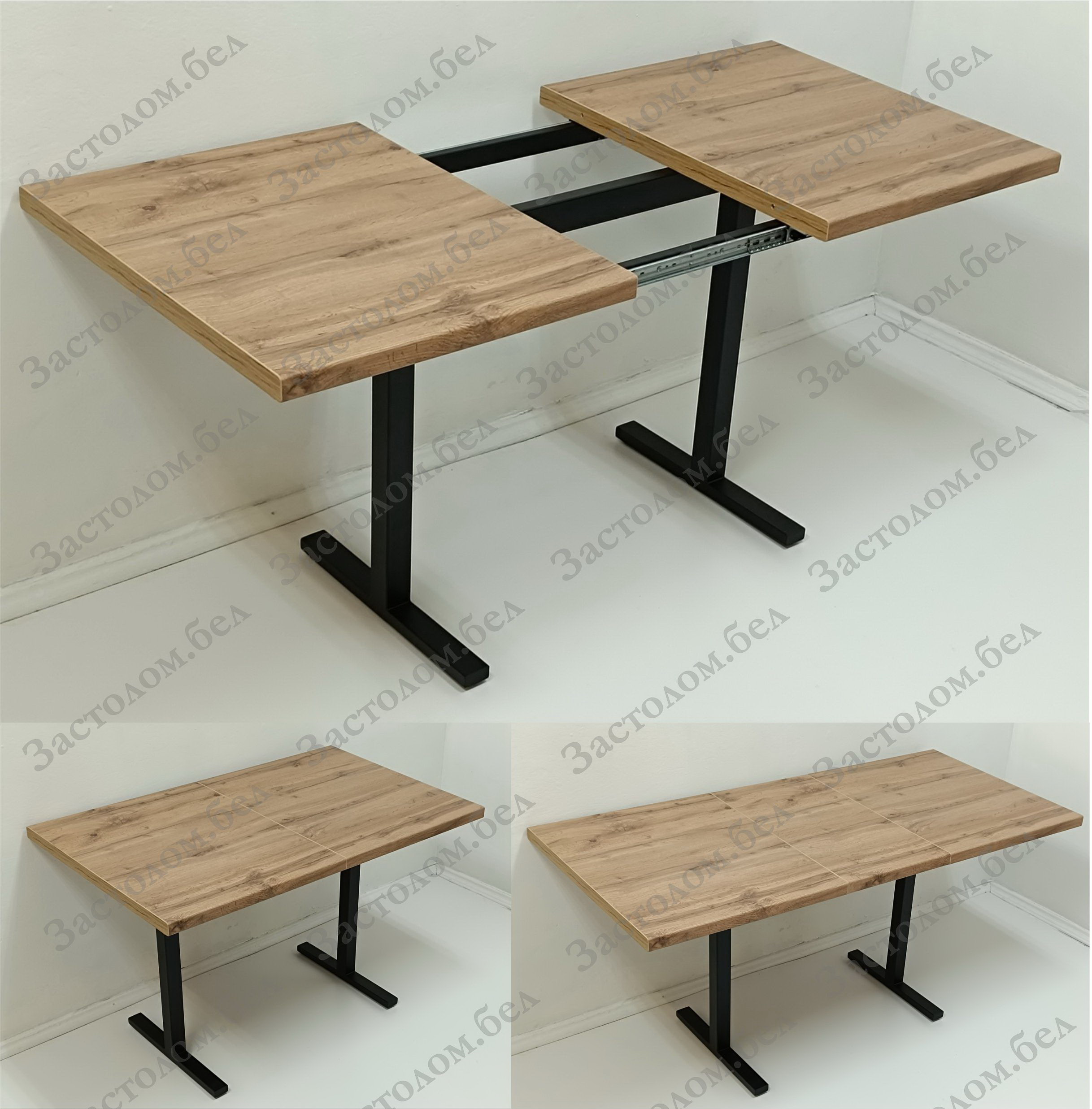 Изготовим кухонные или обеденные РАЗДВИЖНЫЕ столы на УДОБНОМ цельносварном металлическом подстолье серии "Н" из постформинга, ЛДСП или массива дуба с широким выбором цвета столешницы и размера стола под заказ