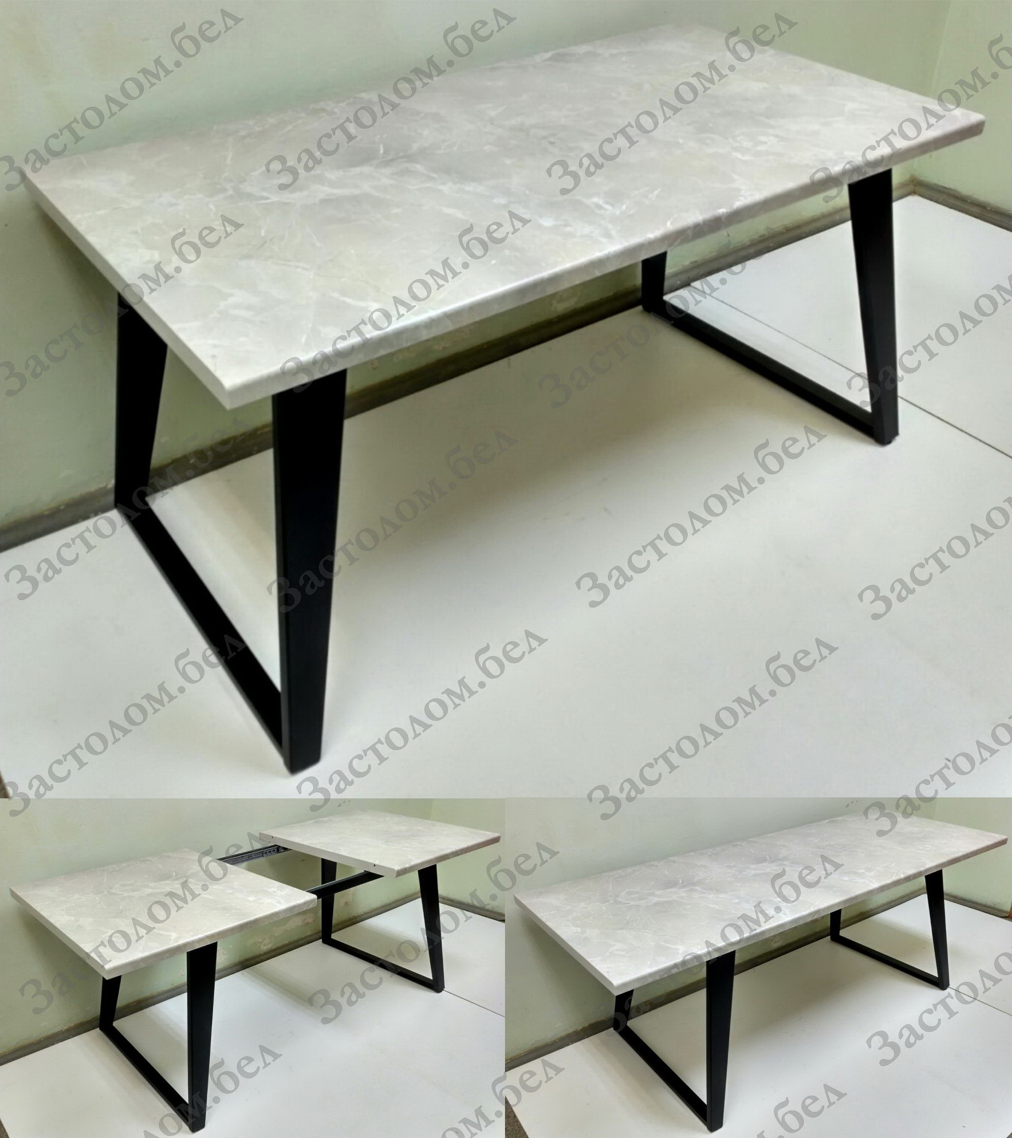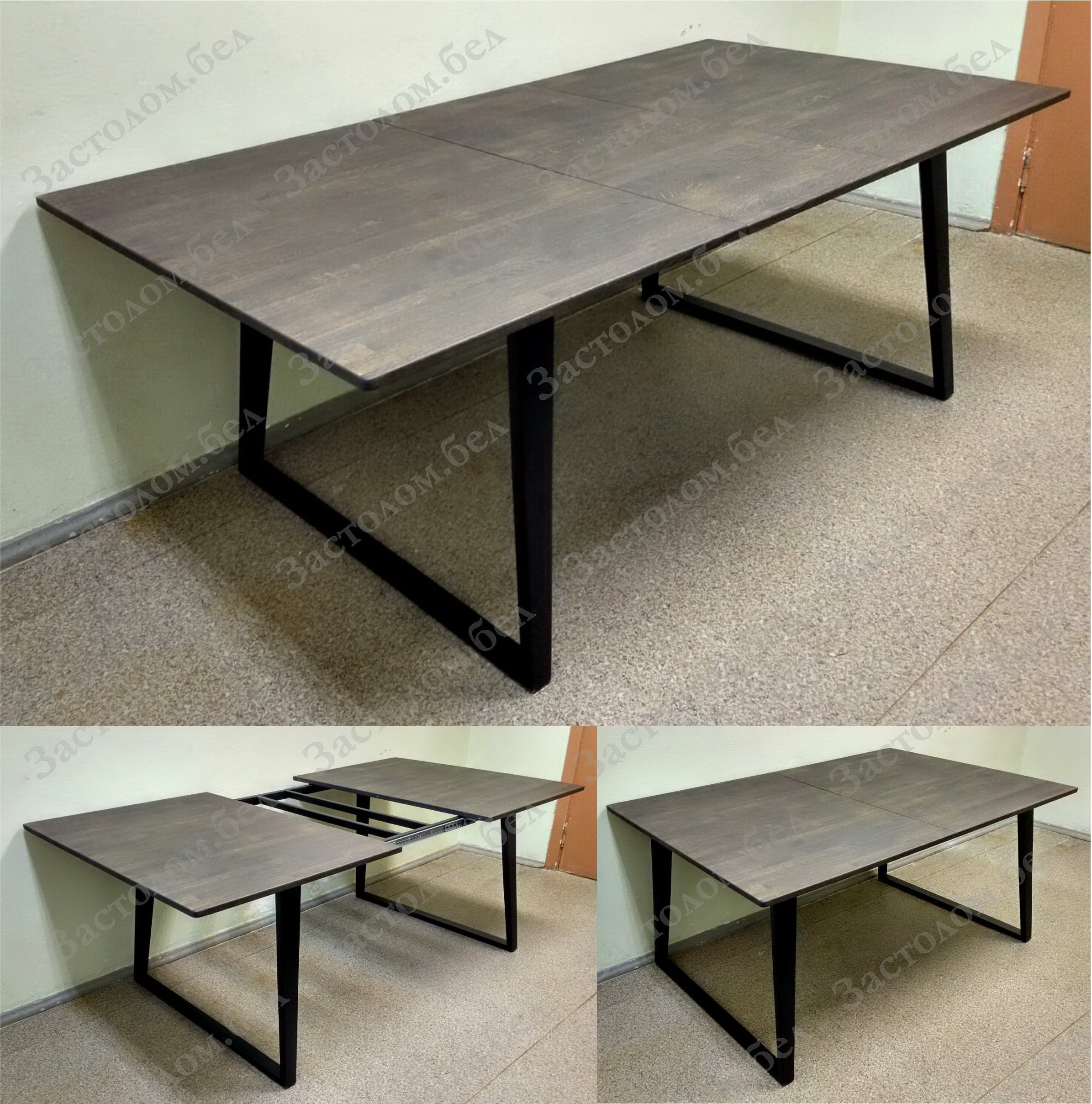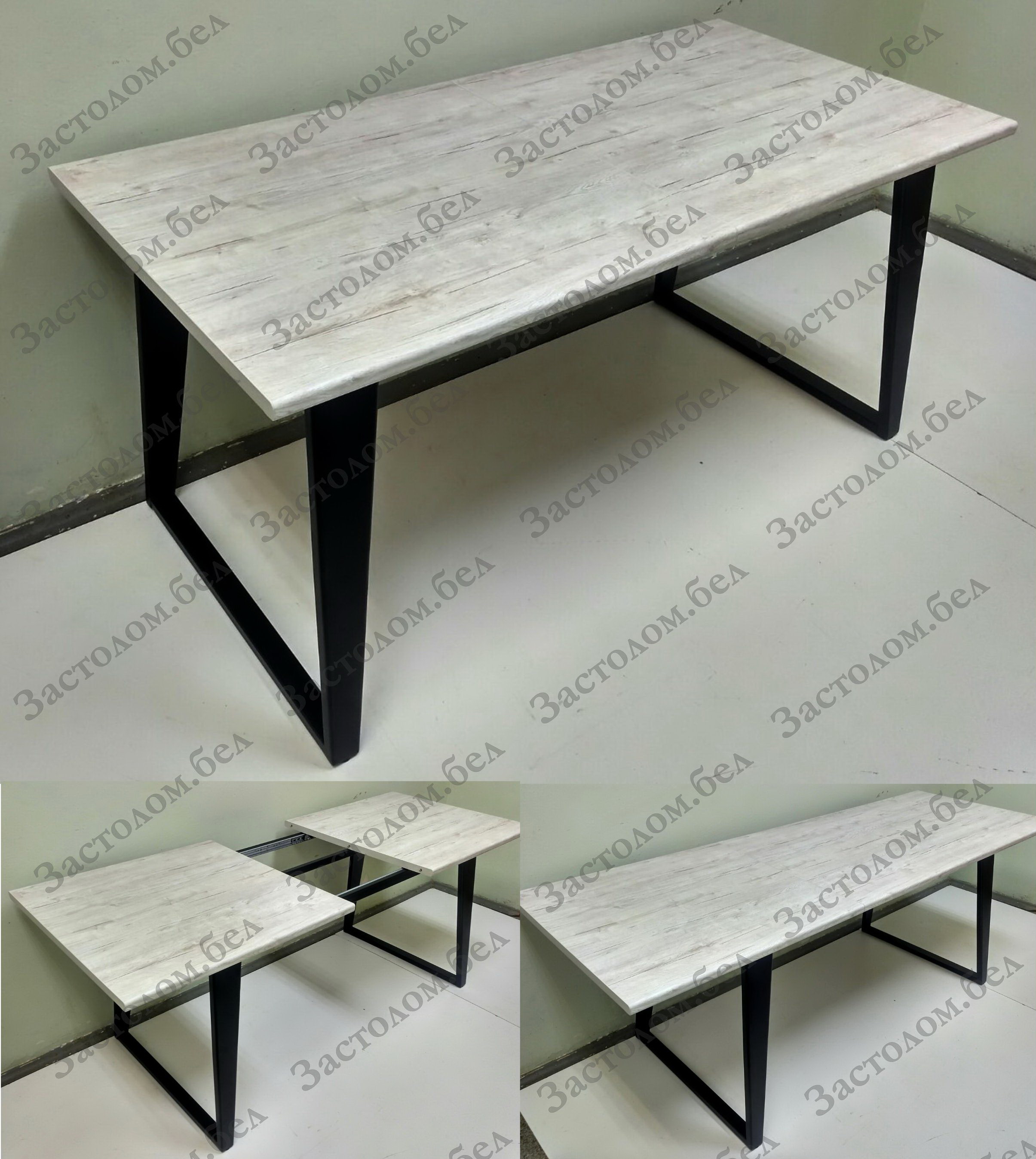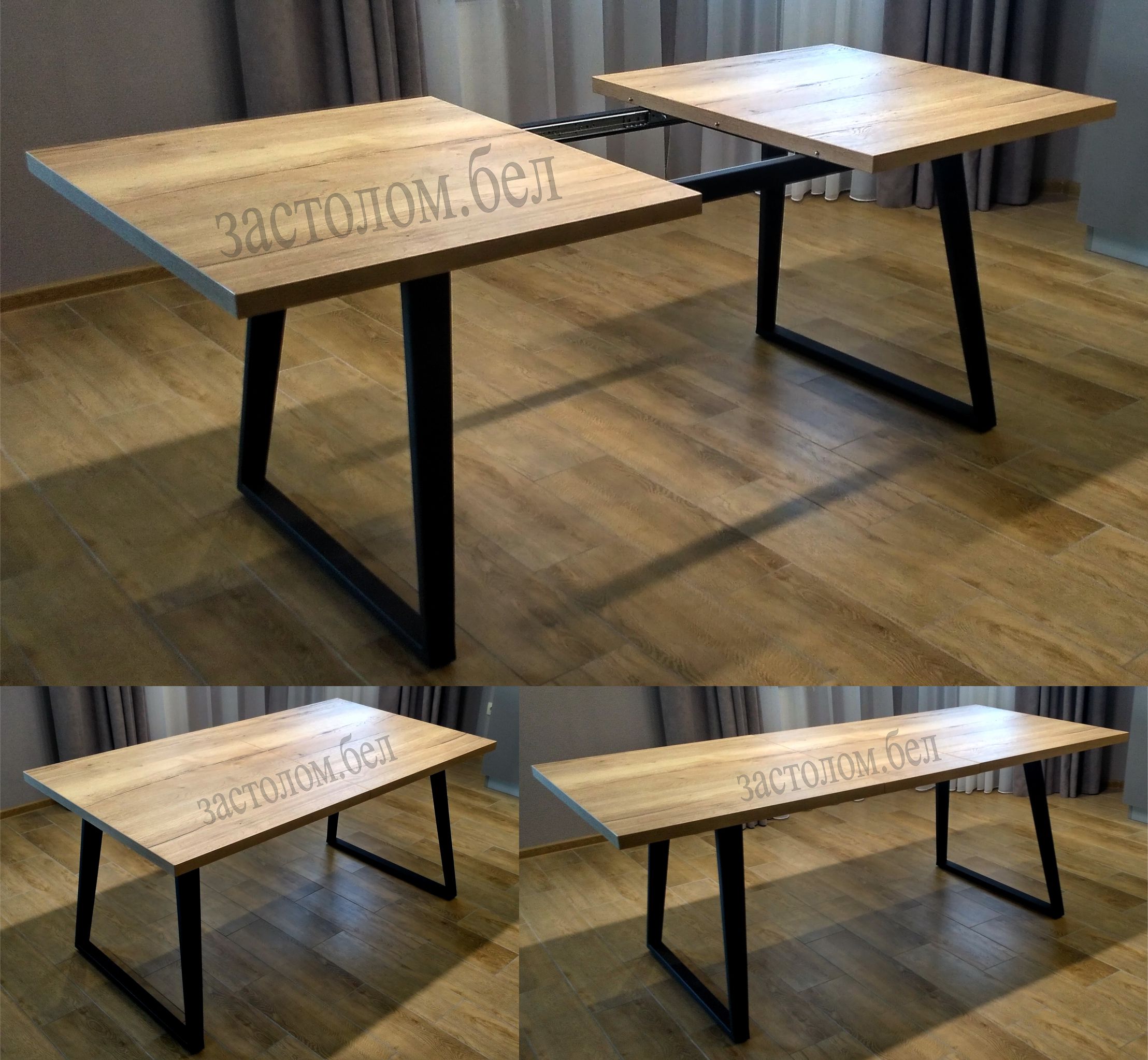 Изготовим кухонные или обеденные РАЗДВИЖНЫЕ столы на УДОБНОМ цельносварном металлическом подстолье серии "БУА" из постформинга, ЛДСП или массива дуба с широким выбором цвета столешницы и размера стола под заказ