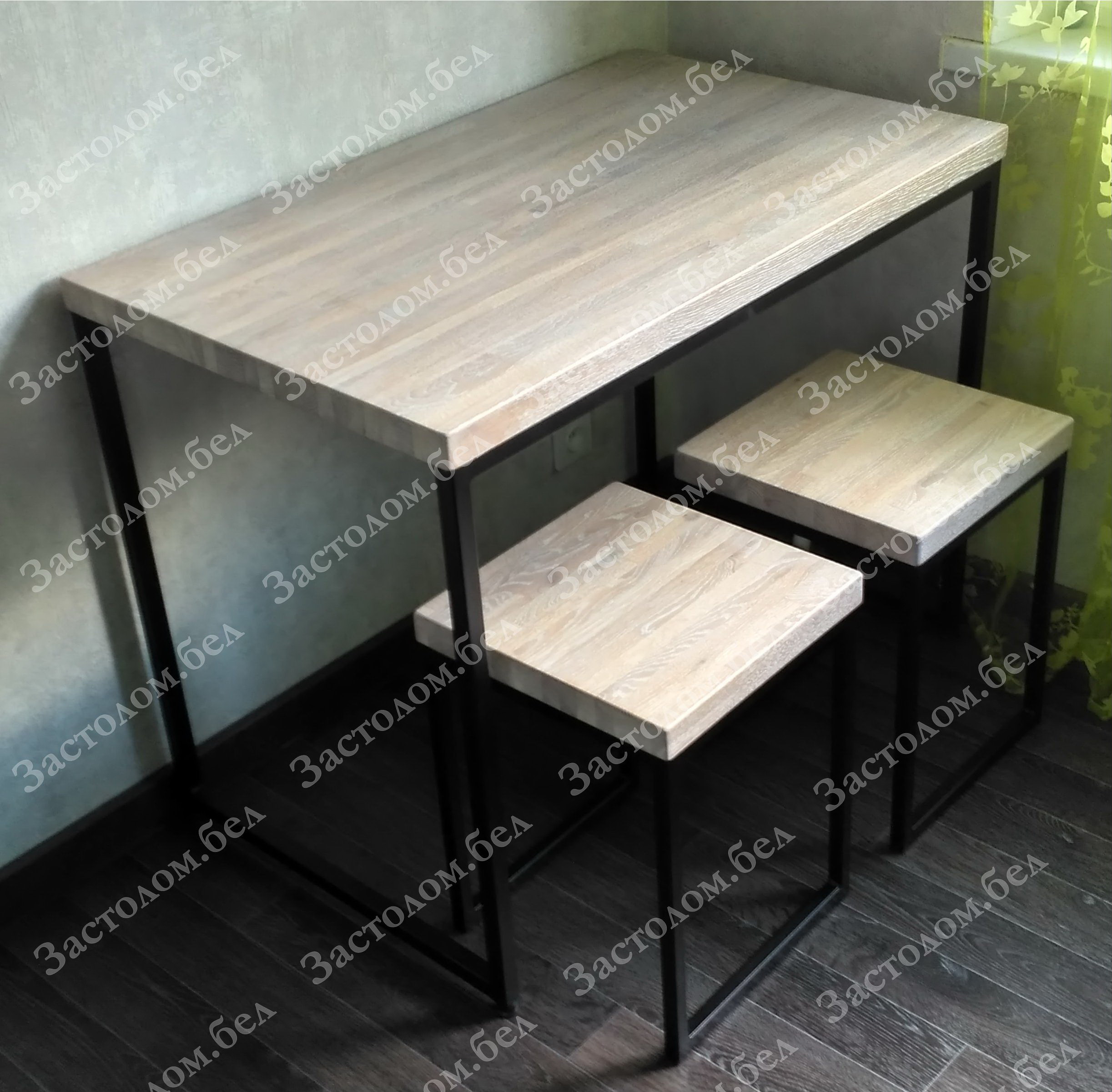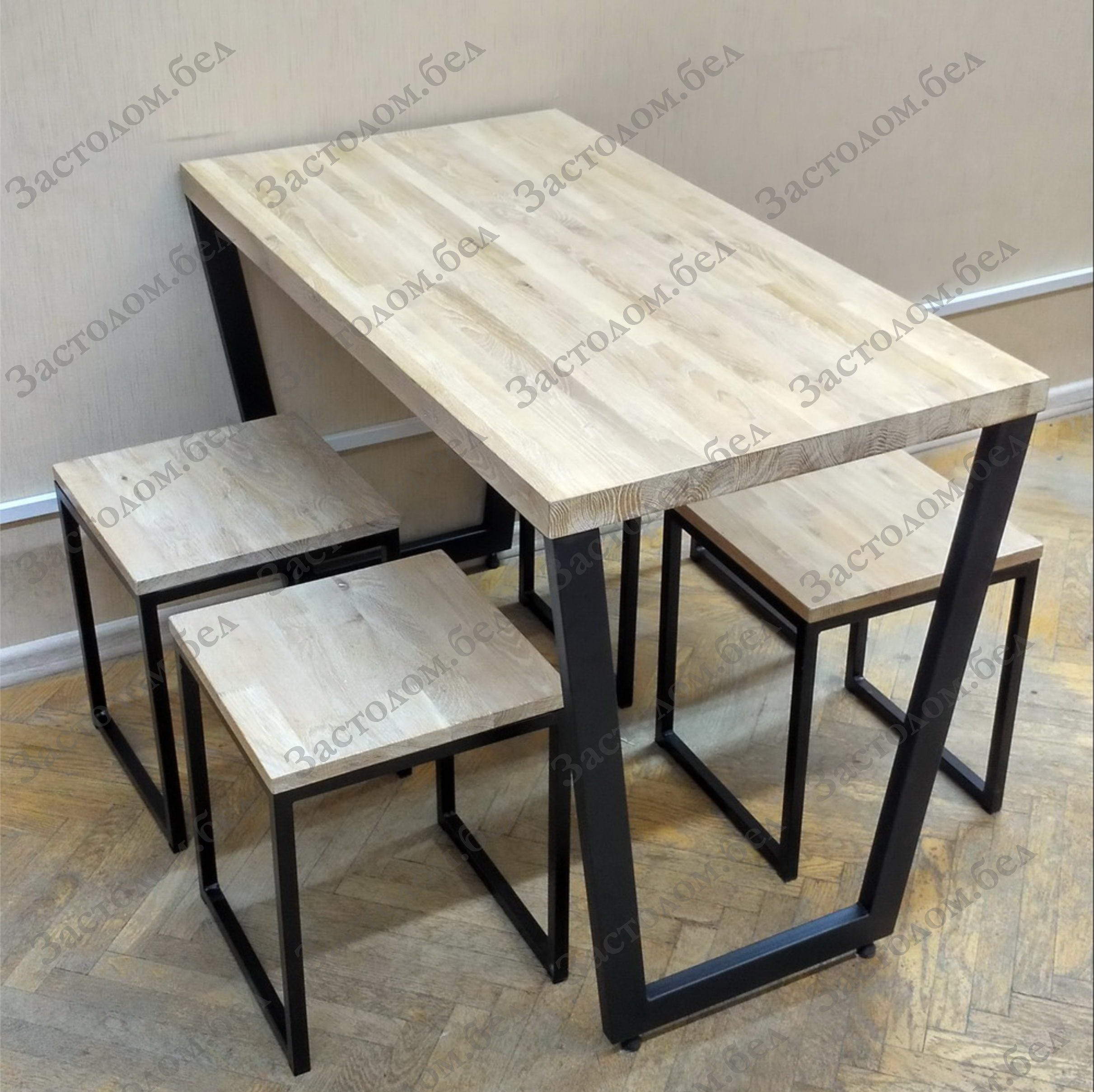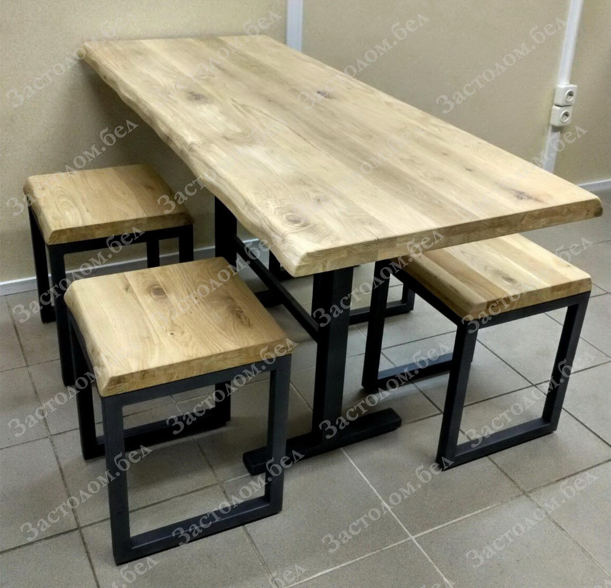 Компания «Застолом.бел» постоянно совершенствуется в этом направлении. Запущена целая линия товаров с применением натурального массива дуба и сосны. Теперь Вы можете купить столы из массива дуба, табуреты из дуба, металлические стеллажи с деревянными полками, письменные столы в стиле Лофт со столешницей из дуба или сосны. Ведь дерево это экологически чистый материал. Изделия из массива – это всегда статусные и долговечные товары. Они создают ощущение теплоты и особого уюта.