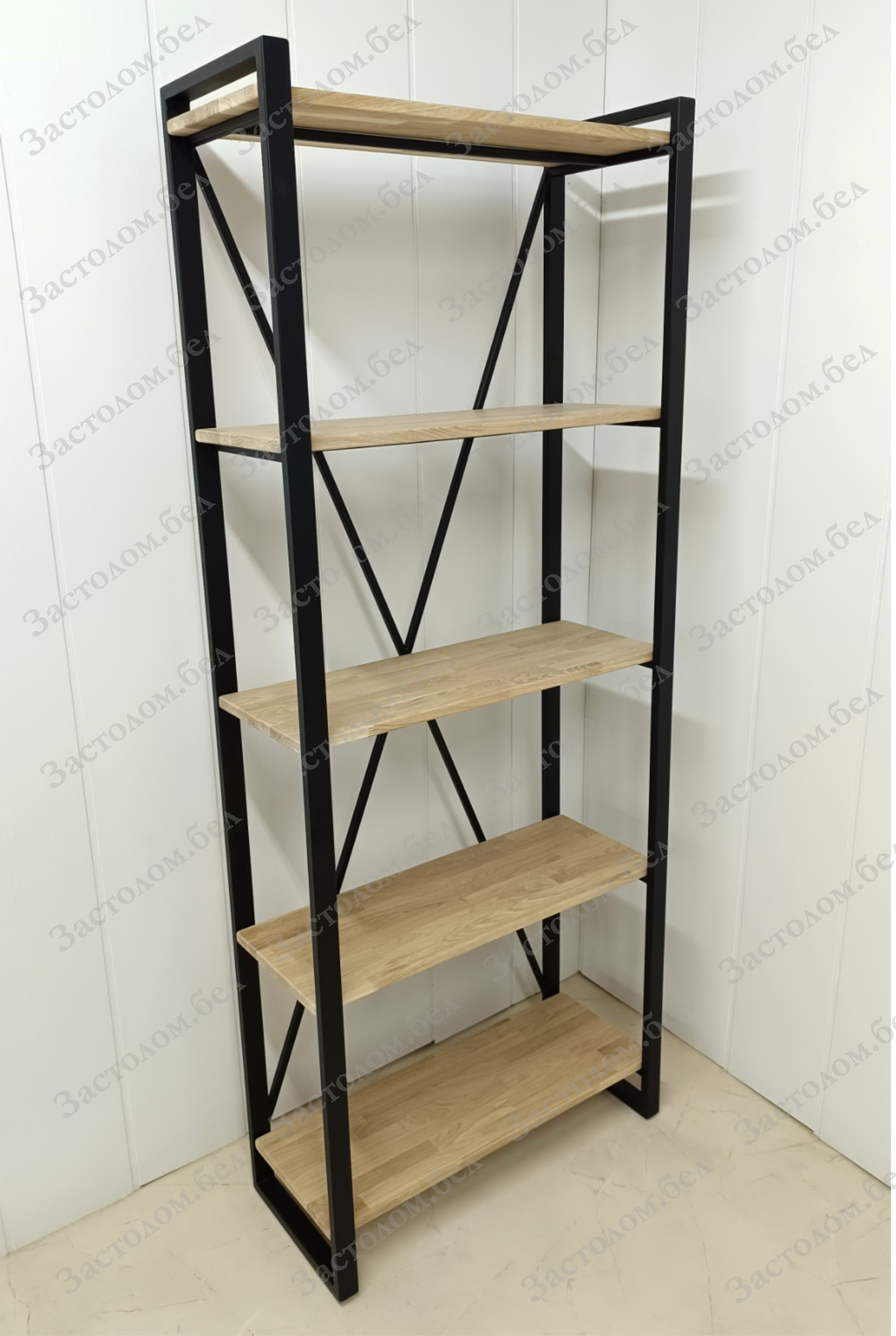 Стеллаж на металлокаркасе "ОХ" с полками из массива ДУБА, ЛДСП или постформинга изготовим под заказ по Вашим размерам!