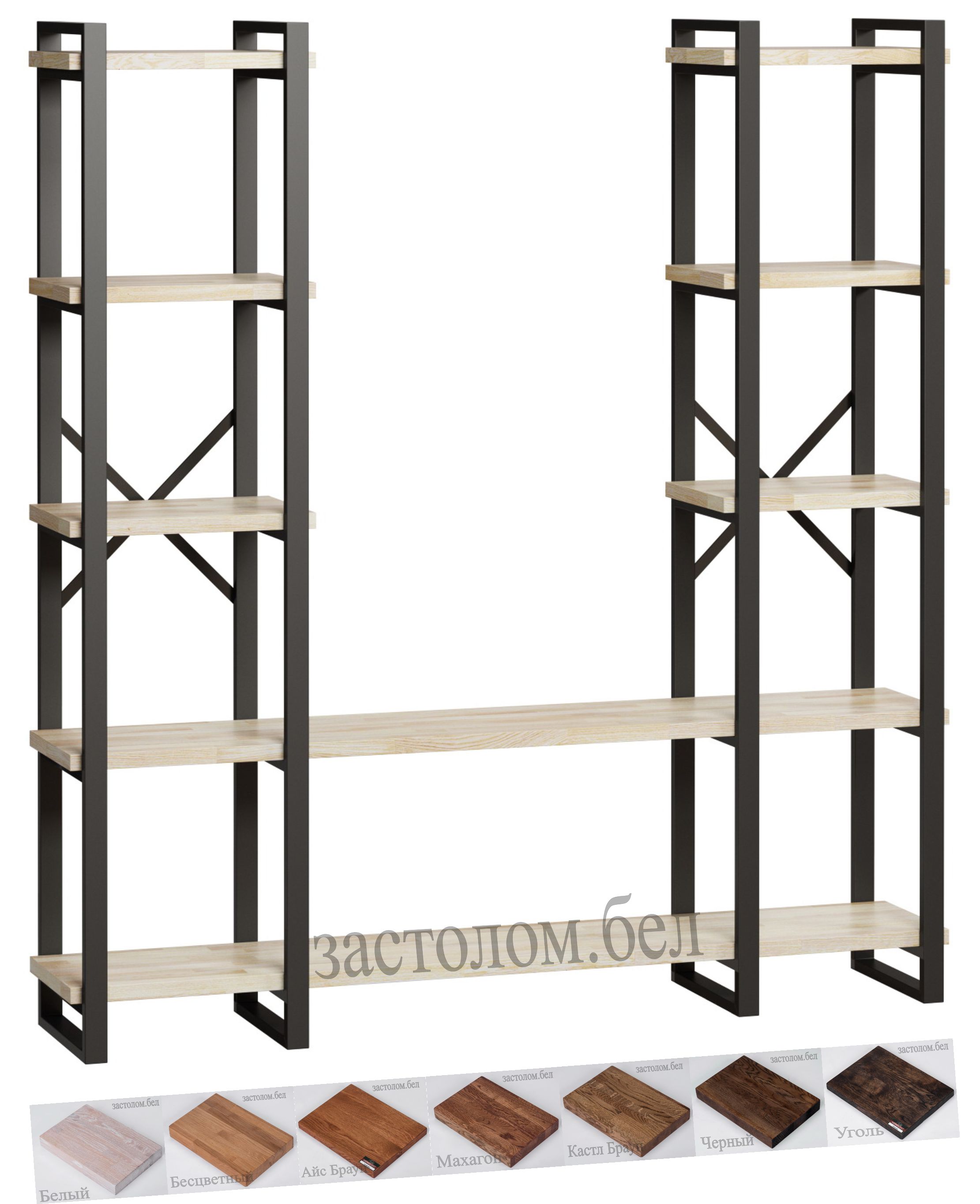 Стеллаж серия "Н" ЛОФТ металлический с полками из ЛДСП или массива дуба с выбором размера и цвета