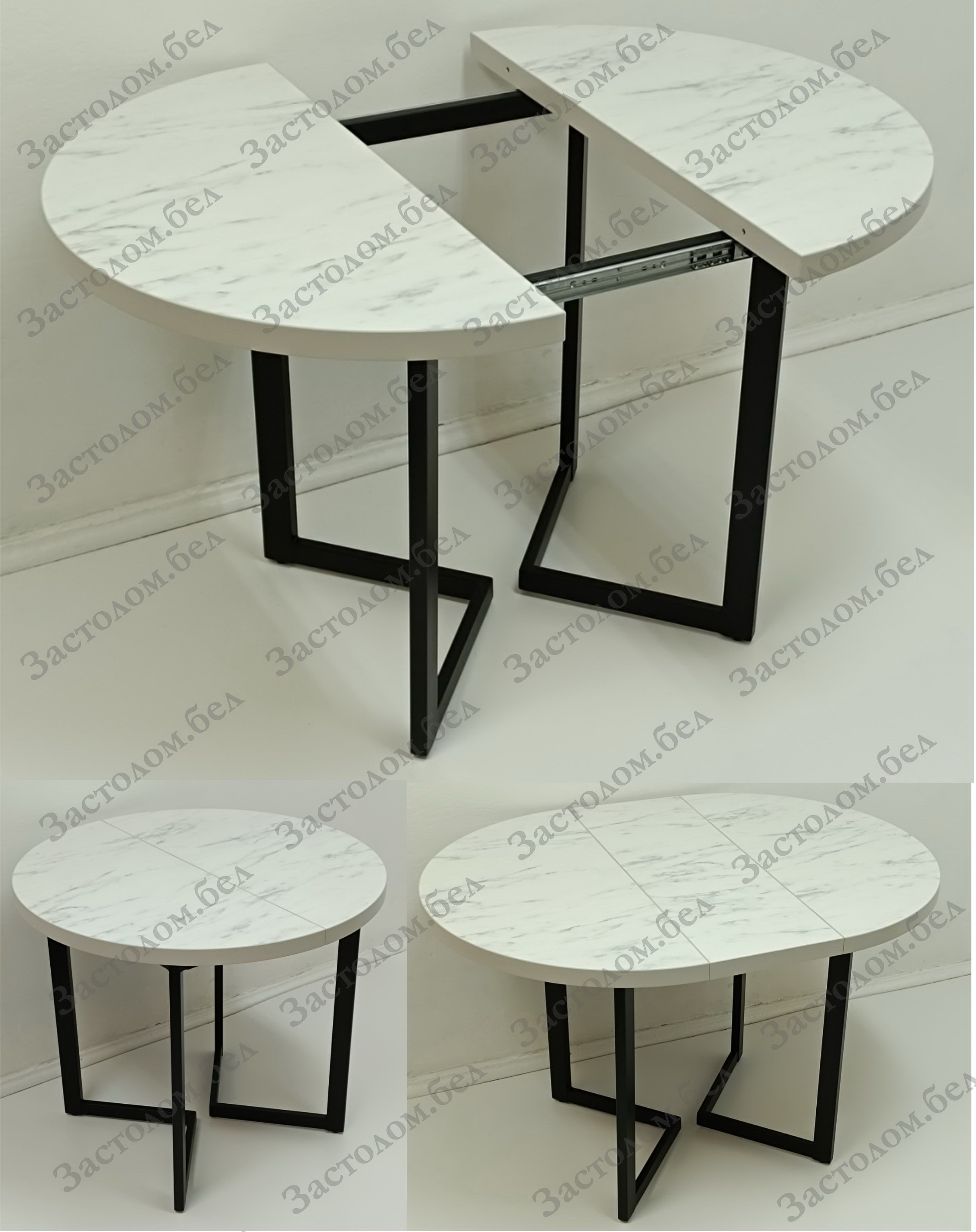 ИЗГОТОВИМ по Вашим размерам кухонные обеденные круглые РАЗДВИЖНЫЕ столы из постформинга, ЛДСП или массива дуба на НАДЕЖНОМ цельносварном металлическом подстолье серии "Z" с широким выбором цвета столешницы под заказ